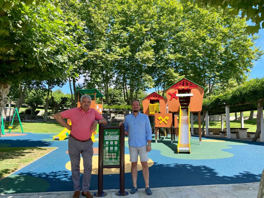 “Se mejoró un área de 315 metros cuadrados en la que se repuso el suelo con EPDM, haciendo dibujos de colores acordes con el entorno y con espesores especiales para amortiguar caídas. Se colocaron juegos de columpios, juegos adaptados como columpios cesta, con una pequeña caseta que simula que estamos en medio del bosque con toboganes, redes trepadoras y juegos de equilibrio”, explica el alcalde de Chantada, Manuel Lorenzo Varela.