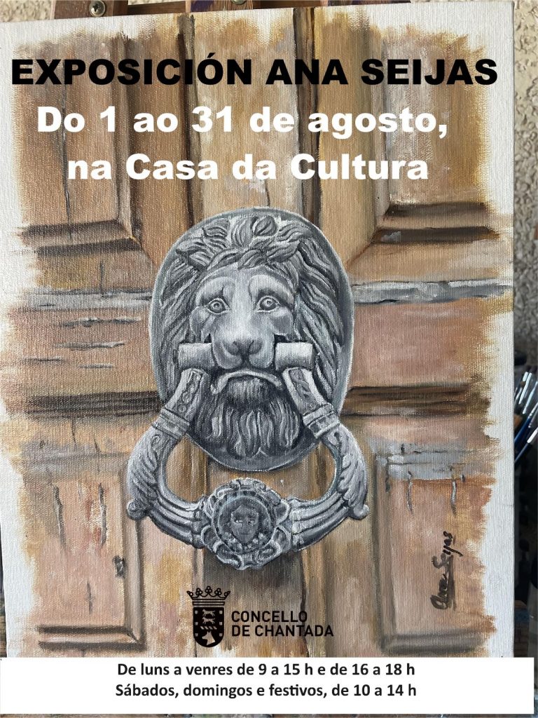 Durante todo o mes poderase visitar, “Chantada, todo corazón” de Ana Seijas. Esta chantadina afincada en Málaga desde hai anos comezou a pintar como afeccionada no 2002. Despois de varias exposicións colectivas no 2012 fai a primeira exposición individual na Casa da Cultura de Chantada. Nesta ocasión regresa á súa vila natal cunha mostra baseada en vivencias e imaxes de Chantada.