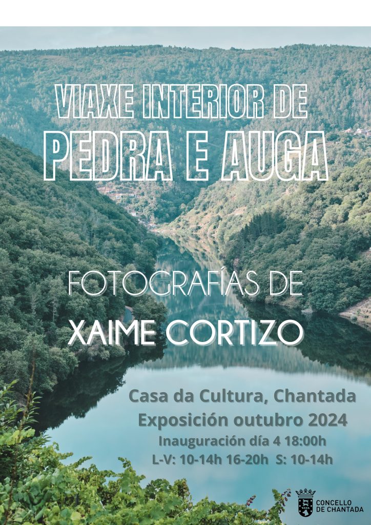 El fotógrafo gallego, Xaime Cortizo, con larga trayectoria en la fotografía y en la comunicación visual, trae a Chantada la exposición “Viaxe interior de Pedra e Auga”, que se podrá ver en la Casa de la Cultura de Chantada durante todo el mes de octubre.