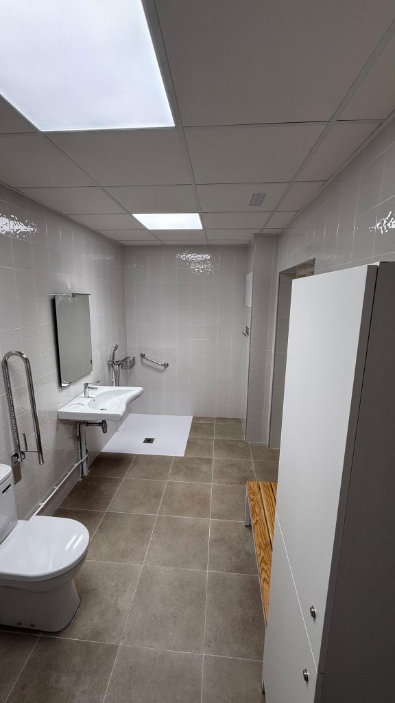 Las instalaciones, que tienen una media de 200 usuarias/os al día, vienen de mejorar su accesibilidad. Por una parte se modificó la entrada con puertas de acceso de medidas adaptadas para personas con limitaciones de movilidad y se creó un nuevo vestuario muy amplio con baño y ducha para que estas personas puedan estar acompañadas si necesitan ayuda.