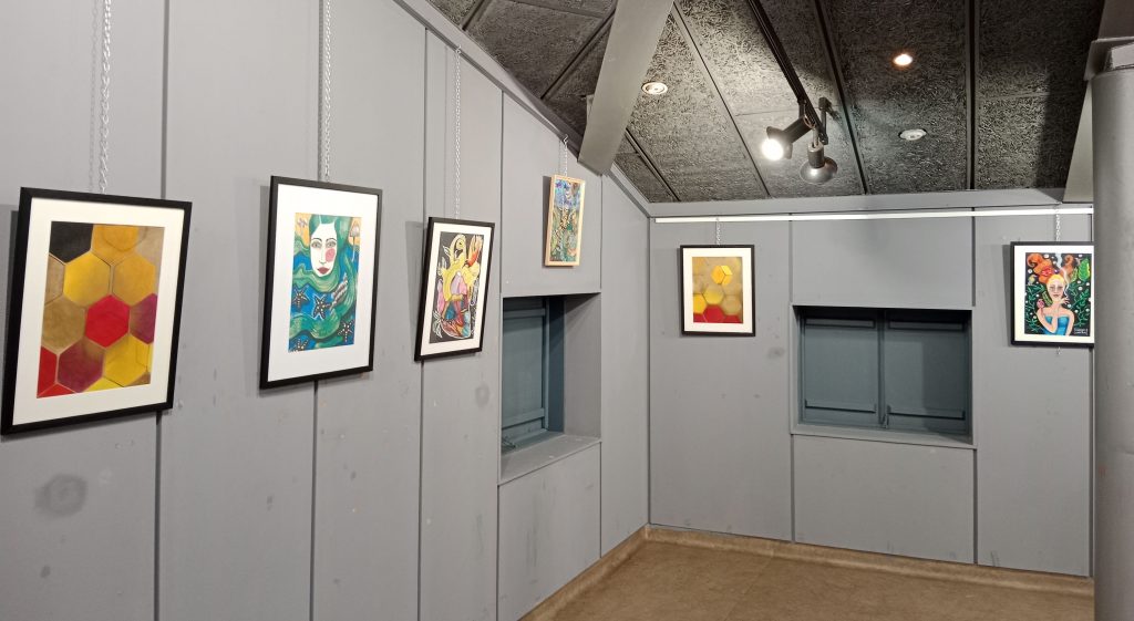 Crystilandia llega a la Ribeira Sacra a comienzos de los 90 atraída por la necesidad de cohabitar con la naturaleza. Su recorrido profesional la lleva por el diseño y el reciclaje de mobiliario, la restauración de retablos e imágenes, la artesanía o la decoración. En la actualidad se centra en su principal pasión, la pintura en la que trabaja acrílicos y pigmentos naturales, que en sus tonos más intensos, crean un universo mágico-realista. Su obra mezcla lo filosófico, lo cómico y lo ornamental, para dar una visión onírica de la realidad. “Fuera de serie” puede visitarse desde comienzos de mes y hasta el día 30, de lunes a viernes en horario de 10:00h a 14:00h y de 16:00h a 20:00h y los sábados en horario de mañana (10:00h a 14:00h).