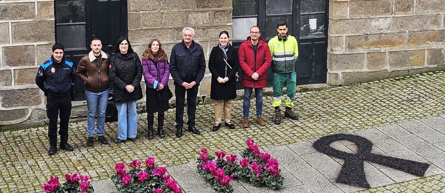 Como parte del escenario de esta celebración, el equipo del área de Parques y Jardines del Ayuntamiento de Chantada colocó 38 plantas de color violeta, una por cada una de las mujeres asesinadas en este 2025 en España. Las plantas dibujan el 25N acompañadas de un lazo negro.