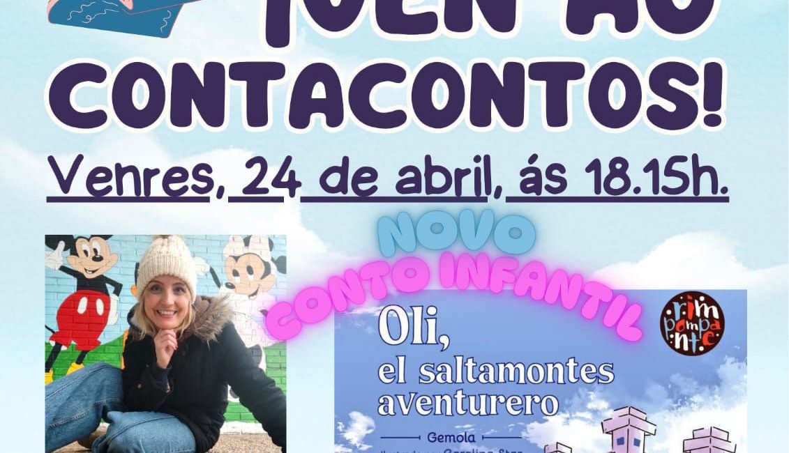 Ya el viernes, 8 de mayo, a las 18.15, como todos los primeros viernes de mes tendrá lugar un cuentacuentos con Ana Meilán titulado «Ao meu lado podes ser». La actividad dirigida a niños y niñas de 1 a 5 años se celebrará a las 18:15h